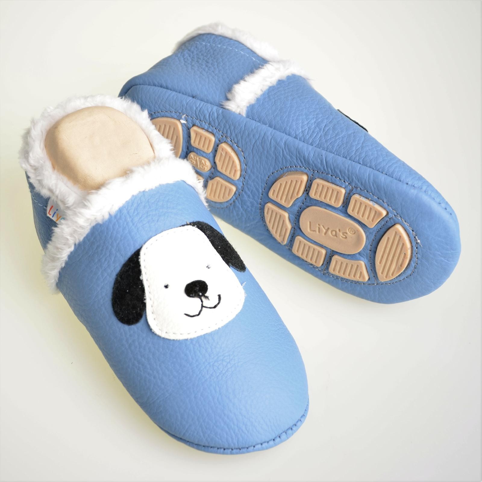 • Das Oberteil der gefütterten Lederpuschen ist aus weichem, atmungsaktivem Glattleder angefertigt.